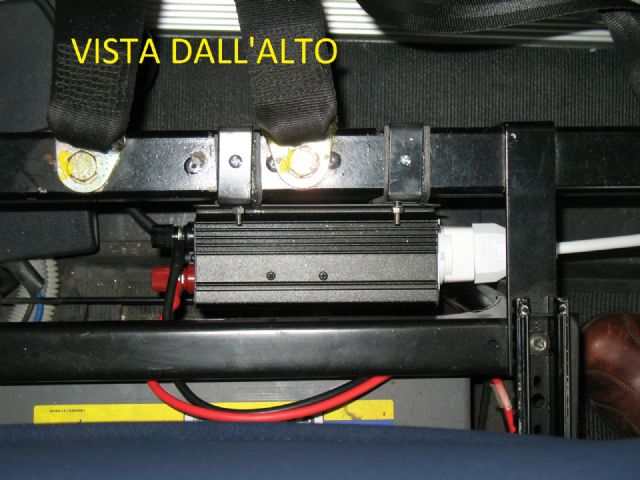 Nella cabina di guida del Ducato 244 tra la parte posteriore del sedile del passeggero e la traversa scatolata c'è uno spazio dove ha preso posto un inverter da 600W.