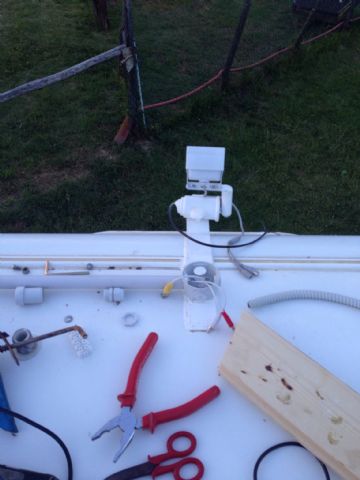 Modificando una vecchia lampada da scrivania ho creato l'alloggio per il motoriduttore, scartato, verniciato ed isolato con sikaflex. Ho lavorato al tornio un cilindro di alluminio su cui ho saldato la staffa per fissare la retrocamera.