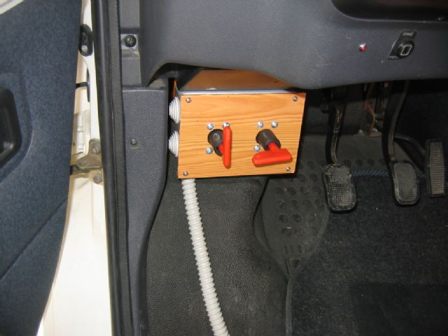 Vista la necessità di una seconda batteria servizi ho pensato di sfruttare un pò di spazio sotto il mio camper. Così ho costruito e fissato questa culla per reggere la "piccolina" (batteria da autobus 220a).