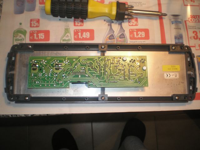 A questo punto è stato facile , scollegando il pannellino, ( FOTO 2 ) seguire il percorso nel circuito ,con il tester selezionato su "continuità, fino a raggiungere gli interruttori e trovare i contatti che davano continuità solamente quando venivano schiacciati i pulsanti.