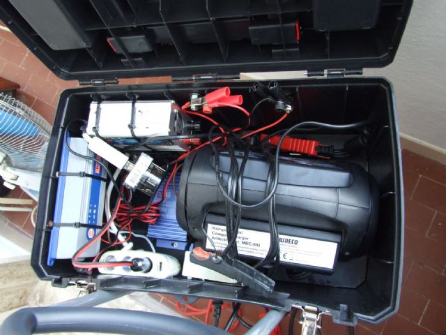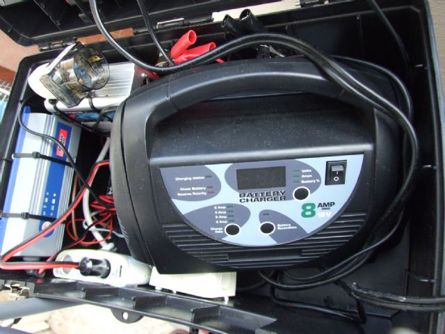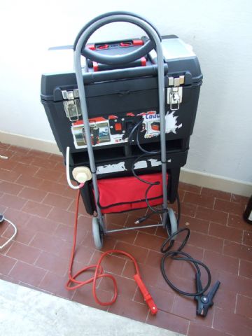 Per cui ho costruito questo "carretto" che mi permette di risolvere questi problemi. Ho utilizzato una batteria motore usata che tengo sempre carica in casa e quando ho bisogno porto il "carretto" sul camper e lo lascio almeno 24 ore e mi ricarica le batterie dei servizi e se ho bisogno, lo posso usare anche come "booster" per mettere in moto il camper.