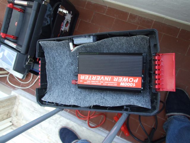 BATTERIA MOTORE -> INVERTER 220V 500W -> CARICA BATTERIE -> BATTERIA SERVIZI