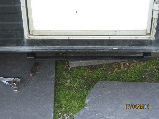 Il gradino è collegato alla struttura con dei piatti di ferro fissati in diagonale per distribuire meglio lo sforzo. L'ho pensato di fare con tubolare in modo tale da avere sempre i gradini a livello, qualsiasi sia la posizione del camper, visto che questo accessorio appoggia in terra.