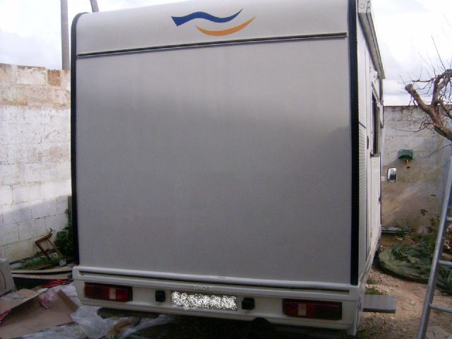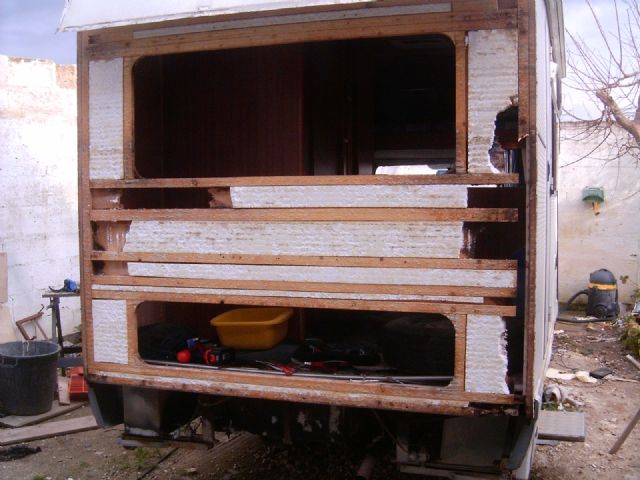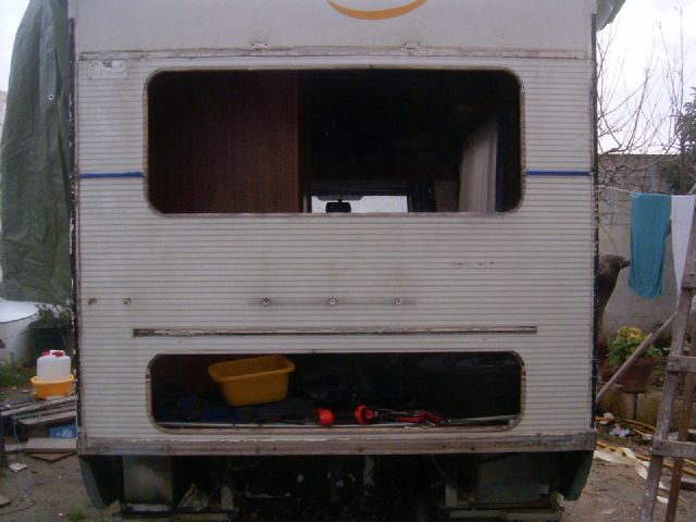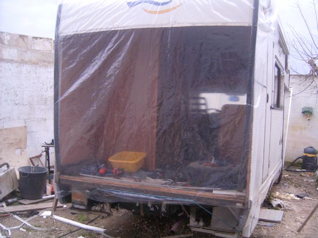 Dopo aver smontato la vecchia parete, ho provveduto a coprire il camper con un telo in pvc (purtroppo non ho un posto coperto).