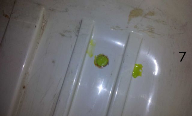 Sgrassare la zona, accostare i lembi della crepa (con carta gommata esteriormente mantenerli vicini, nel caso di buchi tapparli), stendere con un punta di giravite la pasta lungo la crepa o a riempire i fori, lasciare 24 ad asciugare e il gioco è fatto (foto 5, 6, 7).