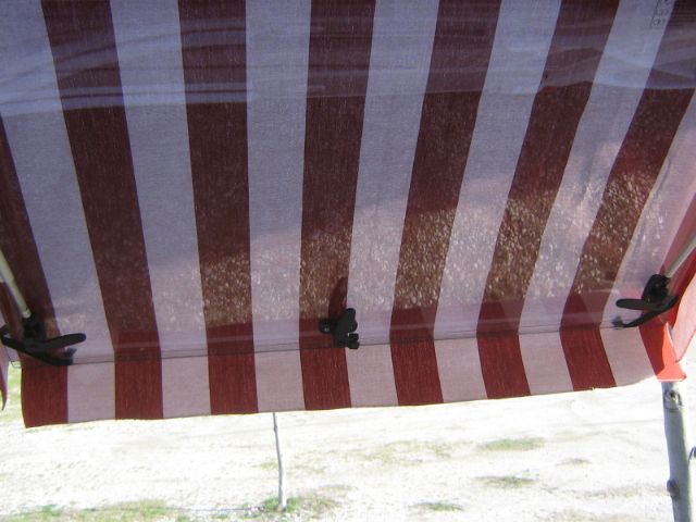 Bello.. fatto bene... ma permettimi, io ho risolto con elastico cucito sulla parte alta della tela che unisce i due lembi, e due segmenti sempre elastici cuciti ad angolo che si inseriscono nei 2 angoli bassi del vetro... semplice ed efficacissimo. Sicuramente il tuo resisterebbe al Meltemi di Creta...