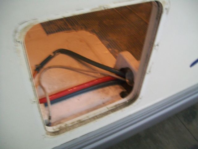 Ho forato il pianale con una lunga punta di trapano per far passare il tubo.