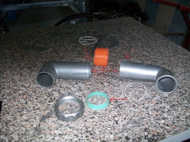 Ho inserito i due tubi a gomito dentro la cassetta unendoli con un pezzetto di tubo in pvc da 40.