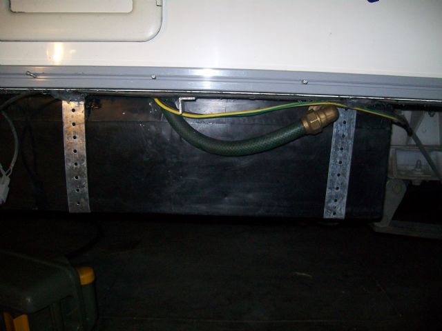 Ho fissato il recipiente sotto il pianale tramite una fascia metallica già tagliata e sagomata.