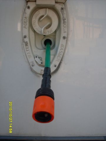 Ho inserito nel gavone un arrotolatore automatico per il carico dell'acqua, facendo uscire il tubo solo per i metri necessari, e lasciando sempre il carico tradizionale.