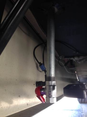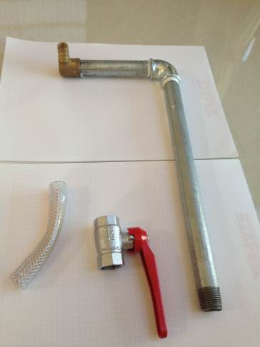Sfruttando il foro preesistente (diam. 25 mm) ho pensato di costruire un sistema con tubi e giunti idraulici da 1/2" acquistabile in qualsiasi brico.
