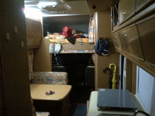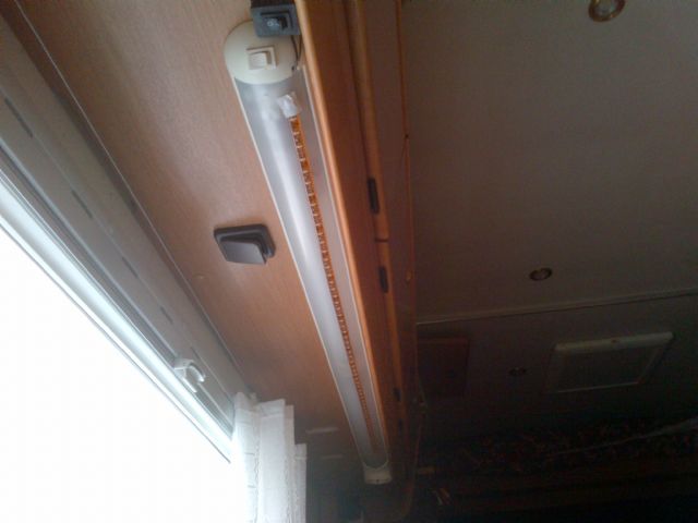 Altra illuminazione l'ho posizionata sopra la dinette, utilizzando un angolare in legno (per dare più inclinazione alla striscia) ed una parte di una striscia impermeabile da 5,00 mt, con 600 led 3528 al mt. da 3800 k, dal costo tot. di 17.60 € (su ebay).