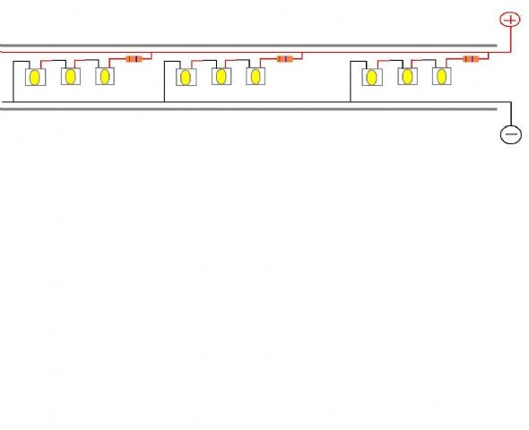 Questo è lo schema elettrico per la realizzazione della canalina "ledizzata"