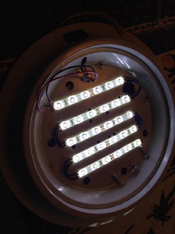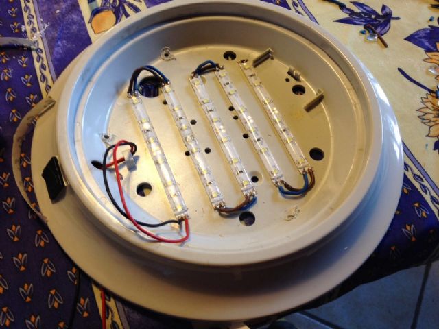 PLAFONIERE: riprendendo spunto da altri lavori ho sostituito i vecchi neon con 5 strisce di 6 led ciascuna, saldati insieme ed incollati nella vecchia sede. Un po' di luce in più consumando 1/10 rispetto a prima.