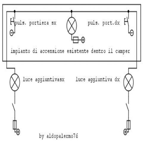 Con una fresa da 50 mm ho eseguito due fori nelle tasche, vi ho inserito le lampade, e ho fatto due ulteriori foti per collagare gli interruttori per poter spegnere le luci quando non servono accese (ad esempio, di giorno).
