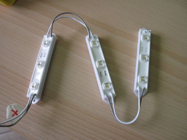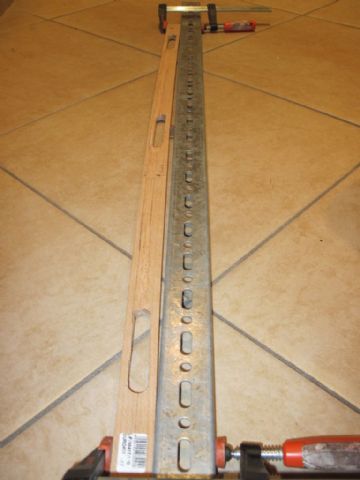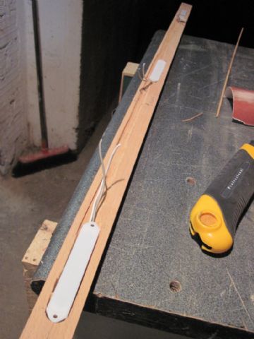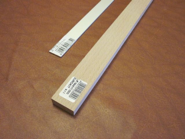 Ho acquistato su e-bay 3 basette da tre led ciascuna, un listello in legno ed una piattina in alluminio ed ho realizzato l'intervento come di seguito descritto: il listello (ho scelto il faggio, sebbene un pò duretto da lavorare lo trovo molto bello e non necessita di finitura) è stato scavato nella parte posteriore per accogliere le basette ed il passaggio dei fili.