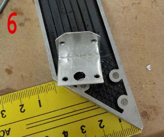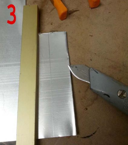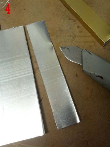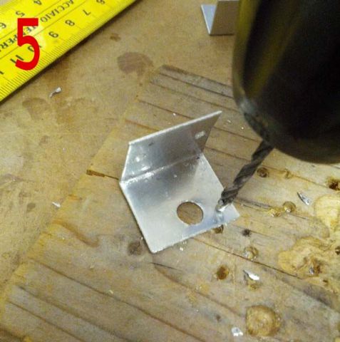 Ho quindi costruito dei supportini ad angolo in lamierino di alluminio da 1mm, acquistato al Brico. Come vedete dalle foto 3 e 4 è molto semplice tagliarlo. Ho poi praticato i fori di fissaggio dei portalampade, quelli per il fissaggio sulle plafoniere e quello più grande per il passaggio dei fili (foto 5, 6, 8).