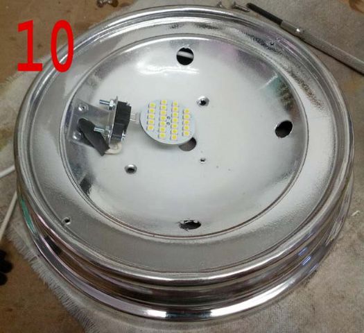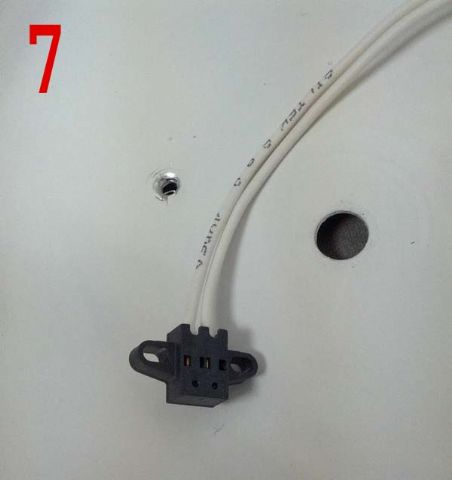 Li ho fissati alle plafoniere con dei rivetti da 3mm, , ho fissato i portalampade con viti e dadi da 3mm (foto 9 e 10), ed ho utilizzato un pezzetto di tubetto termoretraibile, per riparare i fili dagli spigoli dei fori.