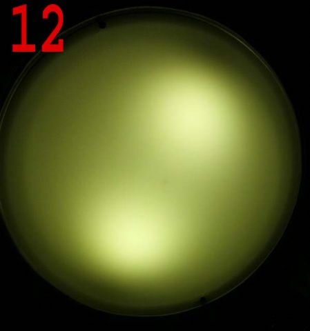 La foto 11 mostra la luminosità, come come si vede con la fotocamera dello smartphone, delle lampade originali ad incandescenza, mentre la foto 12 mostra la luminosità delle lampade a led.