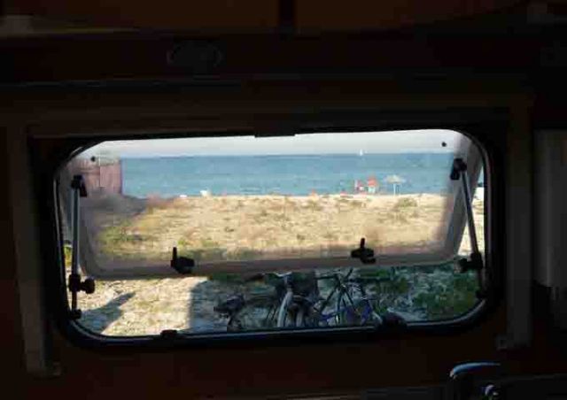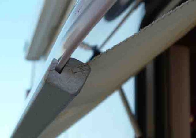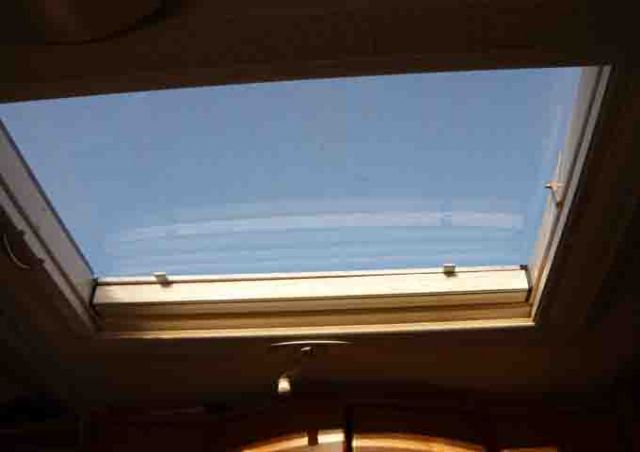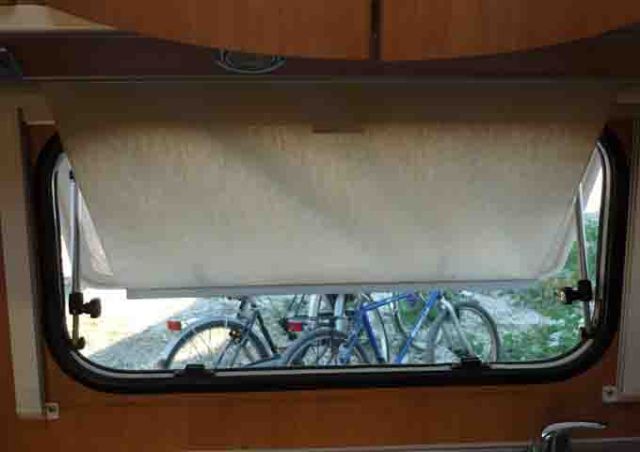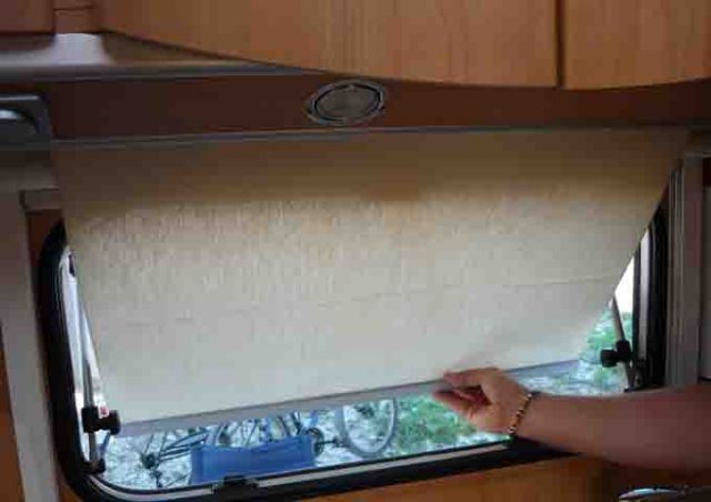 Durante le soste pranzo c'era sempre la necessità di eliminare il riflesso del sole tenendo i finestroni aperti per far entrare l'aria, perciò ho ideato questi scudi termici pratici e molto efficaci.