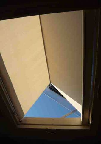 Ho usato sempre lo stesso telo, gli stessi arrotoloratori di zanzariere, e ho messo una barra di alluminio nella parte terminale del finestrone per poter agganciare la tenda oppure farla passare attraverso in modo da poter aprire l'oblò (vedi foto). Qui anzichè usare il listello di legno, ho usato dei ganci.