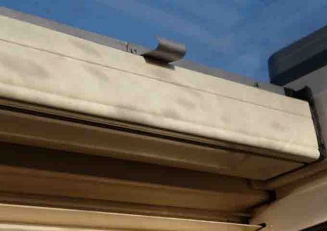 Ho recuperato gli arrotolatori di vecchie zanzariere e ho acquistato un telo per tende da esterno (in un negozio di scampoli) che filtra i raggi solari e lascia passare la luce.