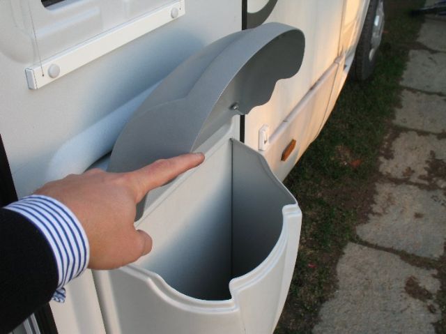 per agevolare l'apertura del coperchio della pattumiera sul mio Roller Team Granduca modello 2007 e similari che in origine ha una apertura veramente sacrificata... chi l'ha sa cosa intendo.... ho fatto questa piccola modifica mettendo 2 staffine di ferro che spostano il centro di rotazione un paio di cm più lontano dalla parete della porta.