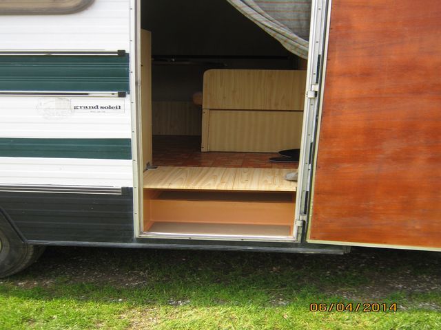 Fare un piano calpestabile avvitato a due cerniere al mobile del lavandino. All'interno del mobile ho messo due pezzi di multistrato per fare presa meglio con le viti. Il piano a riposo è mantenuto da un catenaccio piccolo da armadietti.