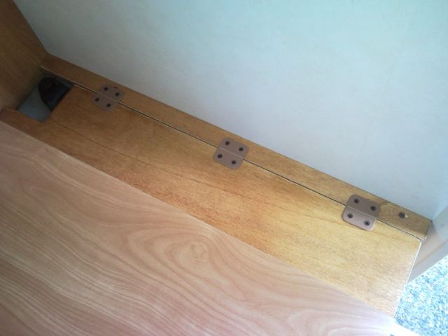 Ribalta riattaccata, l'originale (lo spessore del legno da me acquistato è 15 mm, quello originale 14 mm penso sia il massimo tollerabile, altrimenti bisogna acquistare un pannello per fare la ribalta dello stesso spessore)
