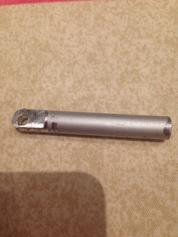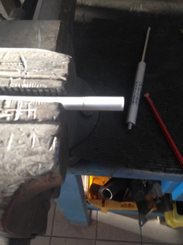 All’estremità opposta ho smerigliato il tondino ricavandone la copia perfetta del fissaggio dell’ammortizzatore all’oblò.
