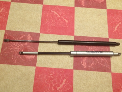 Nella prima foto vedete l’ammortizzatore di 50 newton assemblato, acquistato in un negozio di bricolage/fai da te alla cifra di circa 6 €.