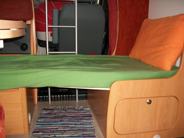 Con della gommapiuma della stessa densita dei letti posteriore del castello ho realizzato il materasso opportunamente sagomato e diviso in due, in modo da piegarlo e riporlo quando non serve in mansarda.