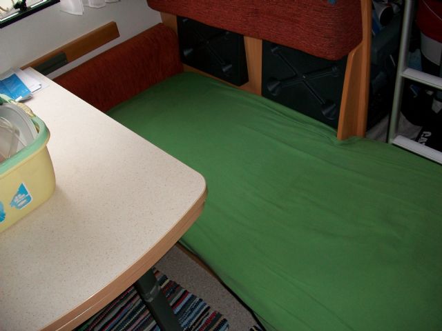 Una soluzione veloce per un 5° letto senza dover stravolgere la dinette e averla sempre pronta per la colazione.