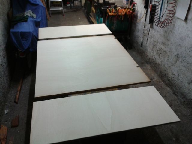 Mi procuro del compensato da 18 mm di spessore tagliato in tre parti con le estremita'piu'piccole che possano fungere da botole