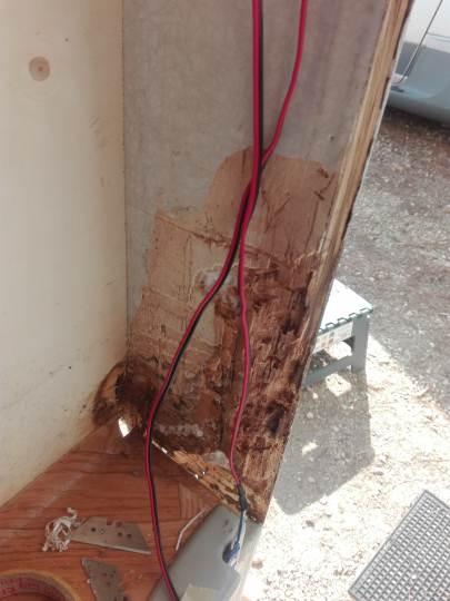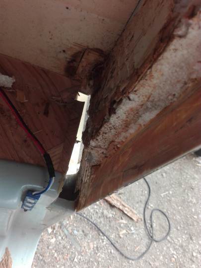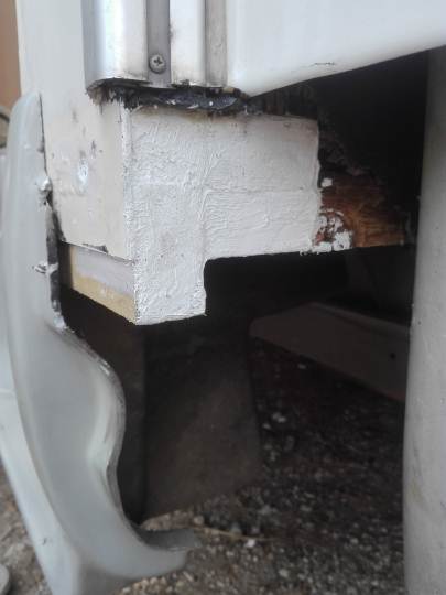 Tolto il paraspigolo, mi sono accorto che il danno provocato dall'infiltrazione era ben più grave di ciò che sembrava, e così - oltre alla traversina perimetrale ormai inesistente - ho dovuto rimuovere anche il telaio della porta, accorgendomi che era compromesso anche parte del controtelaio.