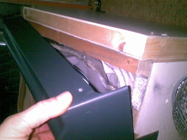 Dopo aver smontato pannelli e profili plastici della cabina scopro un'apertura in corrispondenza dell'angolo di taglio cabina.