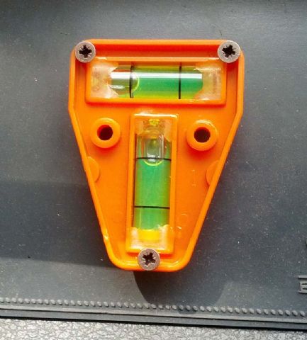 Per mettere a bolla il camper quando mi fermo in una AA oppure in un campeggio, ho comprato in un brico una piccola bolla a T.