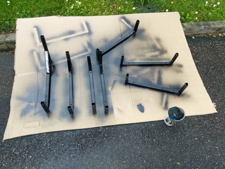 Le C di sostegno le ho realizzato con un profilato di acciaio cavo, con sezione 15x10mm. Ho acquistato il profilato (6 metri circa 7 euro), l'ho tagliato a misura, l'ho fatto saldare, e poi verniciato e montato.