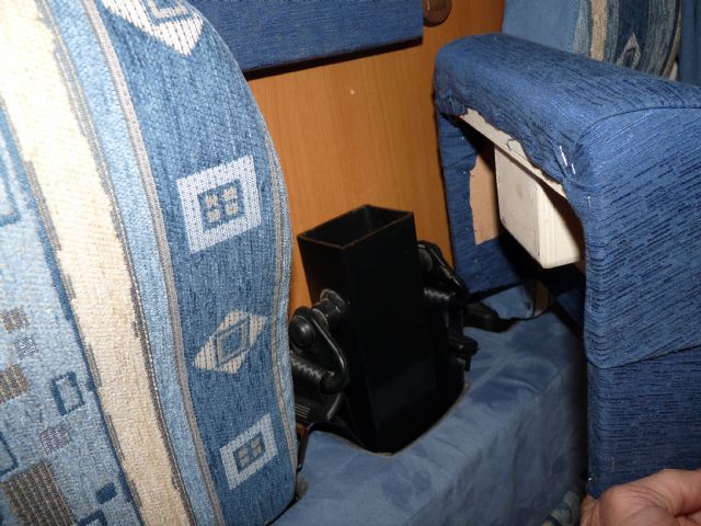 Tra le tante modifiche sino ad ora apportate, forte anche della precedente esperienza di campeggiatore, ho recentemente mascherato il poco gradevole telaio in ferro "Nero" che sostiene il rinvio delle cinghie di sicurezza.