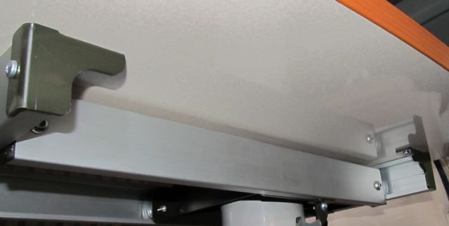 1. Onde evitare di forare il tavolo, ho inserito fra i supporti esistenti, (fig. 1), un profilato di alluminio a sezione rettangolare 20 x 40, (fig. 2), fissato ai profili esistenti tramite due squadrette comprate al bruco e leggermente ritagliate come in (fig. 3), la caratteristica di queste squadrette è quella di avere un foro centrale filettato, sul quale verrà avvitato il supporto;