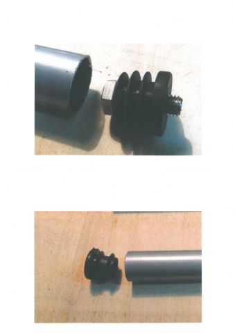 2. Sempre al brico, ho trovato questa gamba, che ho tagliato alla bisogna, (fig. 4), e ai due spezzoni ottenuti, ho inserito alle estremità i tappi con filettatura interna, e in due di essi ho avvitato una vite che fuoriesce dal tappo stesso, quel tanto che basta da poter avvitare nel foro filettato delle due squadrette, (fig. 5,6,7);