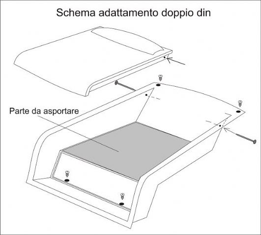 Schema del supporto smontabile ducato (scusate eventuali imprecisioni) Preciso che per comodita nelle operazioni è consigliabile asportare i due convogliatori di aria ai lati dello stereo (sono ad incastro entrambi e basta tirare):