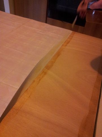 Colla su lato legno e lato tessuto, spazio per poter "girare" il margine e incollarlo
