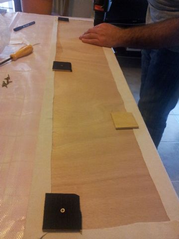 Abbiamo rifilato il leno secondo le dime prese e o stesso lo abbiamo usato come dima per tagliato l'accoppiato e la microfibra.