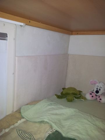 Noi abbiamo fatto tutti i lati dei letti a castello (tranne il fondo piedi del letto inferiore a causa dell'accesso al gavone), i lati del letti della mansarda, la parete a fianco della dinette alla francese sotto alla finestra, i due lati sotto la mansarda e la zona sopra la porta della cellula (questi per estetica, non per necessità o problemi di condensa). Sopra alla porta abbiamo aggiunto dei portachiavi.