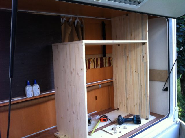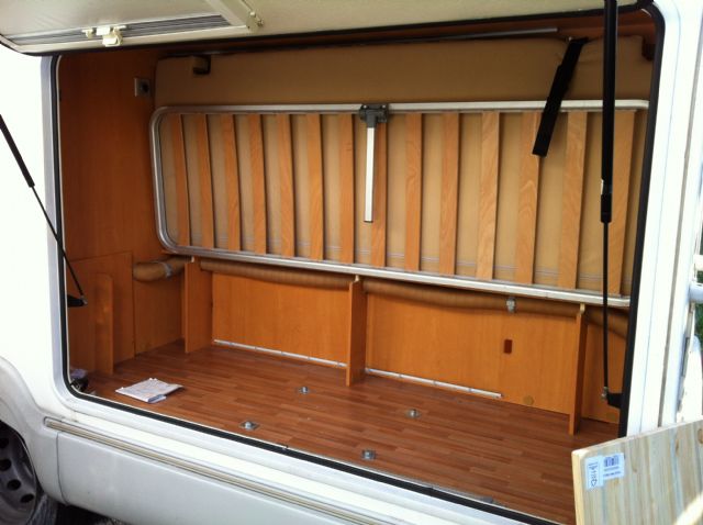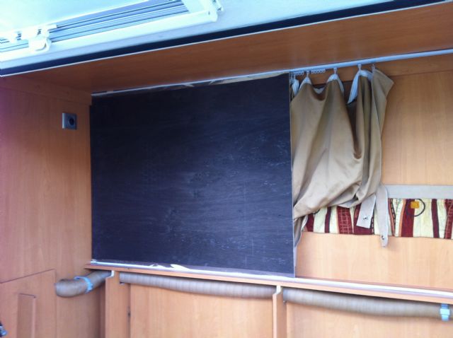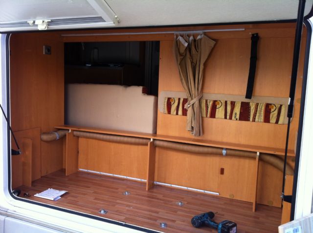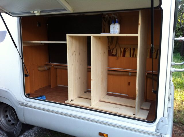 Il primo lavoro è stato smontare il letto a castello per montare un pannellino scorrevole su guide, in modo da rendere accessibile il gavone anche dall’interno del camper.
