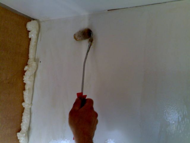 • Ho rivestito il mobilio nuovo e le pareti con lana di vetro e vetroresina, colorando il tutto con vernice resinata bianca