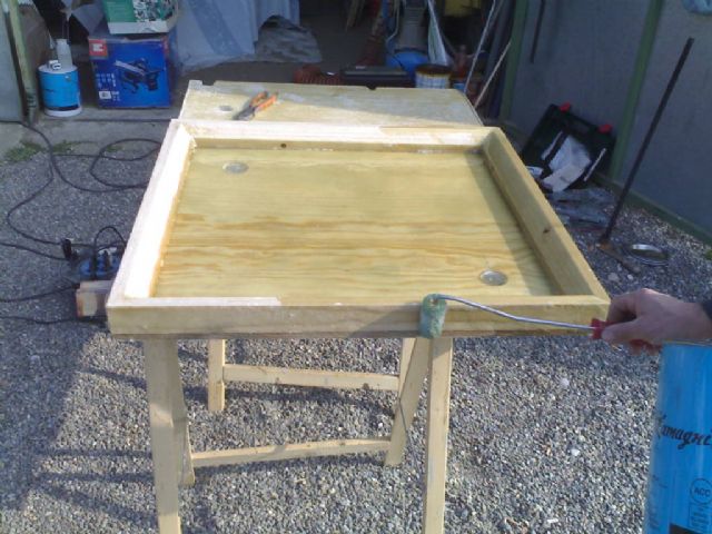 • Con un sesto di legno da mm 50 x 50 ed un foglio di compensato marino da 18 mm ho costruito il nuovo piatto doccia. La nuova disposizione, dopo aver spostato i serbatoi delle acque grigie e delle acque nere, è questa: lavabo a sinistra con vano bombole
