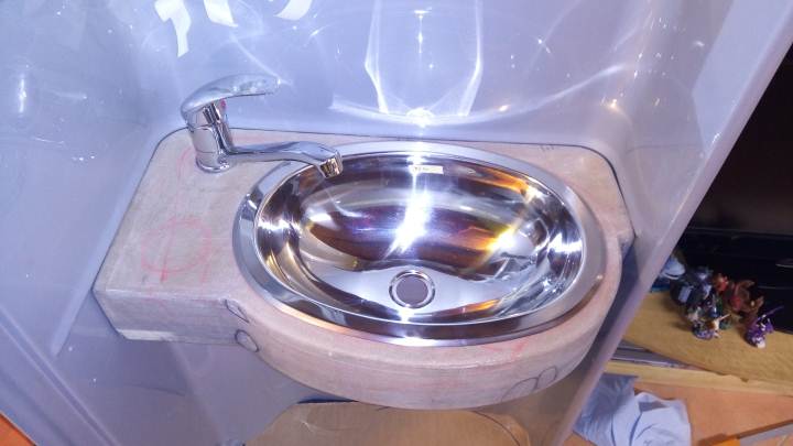 Nel mio camper avevo il lavandino in un angolo, che a causa dello specchio a 45 gradi era inutilizzabile: ho quindi smontato il lavandino e l'ho rifatto spostando la vasca a destra.