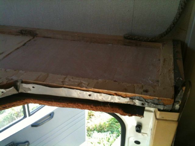 Inizialmente ho incollato con colla americana l’alluminio con i fogli di compensato, ho rifatto tutta la cornice in legno rinforzandola con moraletti supplementari e l'ho incollandola al compensato precedentemente posizionato con colla strutturale, ingraffettata legno su legno.